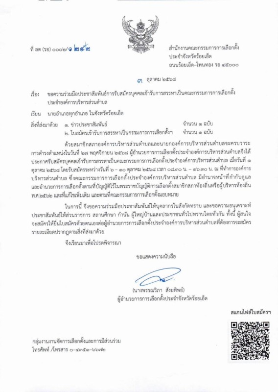 รายละเอียดตามหนังสือที่แนบมาพร้อมนี้ ทั้งนี้ ขอให้ทุก อบต. ประชาสัมพันธ์ทางเว็บไซต์