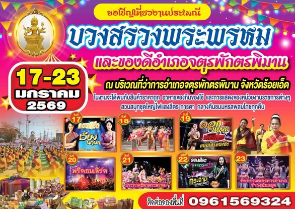หัวข้อ :: ขอเชิญเที่ยวงานประเพณีบวงสรวงพระพรหม ประจำปี พ.ศ. ๒๕๖๙